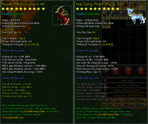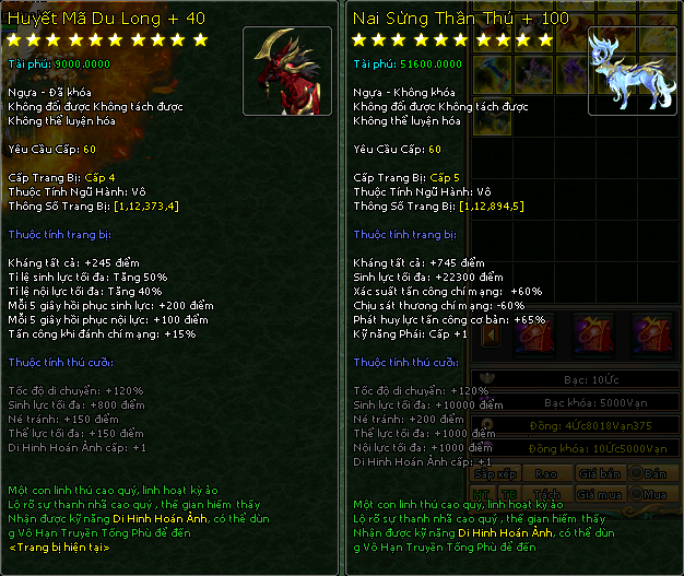 - Thú Cưỡi Du Long có được từ quà hỗ trợ tân thủ, để nâng cấp từ +1 đến +40 hãy đối thoại NPC Nâng Cấp tại thành chính.