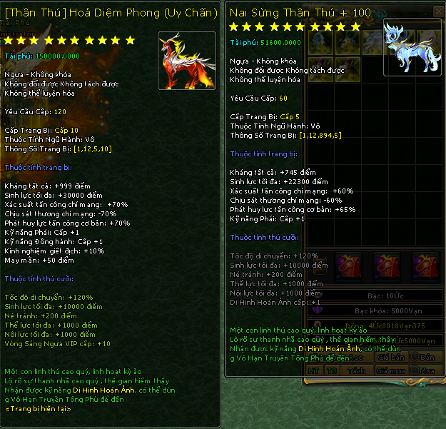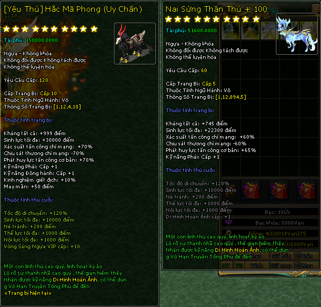 - Thú Cưỡi VIP có được từ việc nhận quà Tích Lũy Phúc Lợi Nạp tại thành chính NPC Giao Dịch Viên.